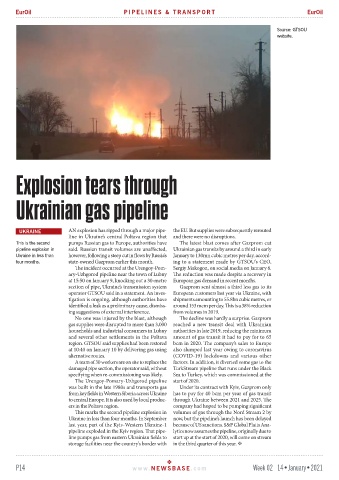 pipeline explosion in said. Russian transit volumes are unaffected, Ukrainian gas transits by around a third in early
