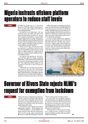 Under the new rules, Auwalu said, oil and gas operators and drilling contractors may only send staff members who perform essential duties to offshore platforms. Additionally, he said, these companies must send all non-essen- tial staff back to shore.