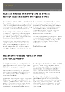 HeadHunter carried out a successful IPO on NAS- DAQ, on May 9 placing 16.3mn ADRs or 32% of capital at $13.5 per ADR, the upper range of price guidance. The shares of the newcomer jumped