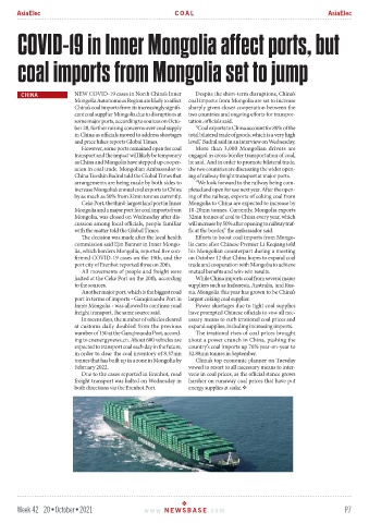 cant coal supplier Mongolia due to disruptions at two countries and ongoing efforts for transpor-