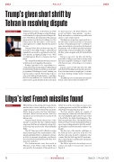WhEN the newswires on the a ernoon of July 16 reported Donald trump as saying Washing- ton had made a lot of progress in resolving its dis- pute with tehran, the immediate feeling among many analysts was that he was talking out of his behind, and as the day came to a close the Ira- nians appeared to con rm that that was indeed the case.