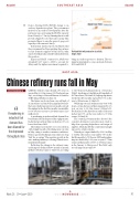 e Chinese automotive sector recorded an 11th straight month of declining new car sales in May, owing to weaker consumer con dence. Reuters quoted SIA Energy senior director Seng Yick Tee as saying “ e negative growth in the auto-making industry is slowing China’s incre- mental fuel demand.”