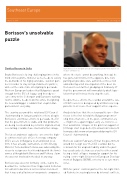 Boyko Borissov is facing challenging times in his third stint as prime minister as he needs to satisfy the demands of his highly unstable coalition part- ners in order to stay on top of domestic politics, while at the same time attempting to persuade Western European leaders that Bulgaria is good enough for the EU’s A league and thereby se- cure entry to the Schengen and Eurozone waiting rooms. And he needs to do this while firefighting the new and bigger scandals that erupt in Bul- garia almost every day.