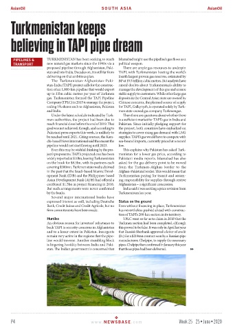stan-India (TAPI) project calls for the construc- raised doubts about Turkmenistan’s ability to