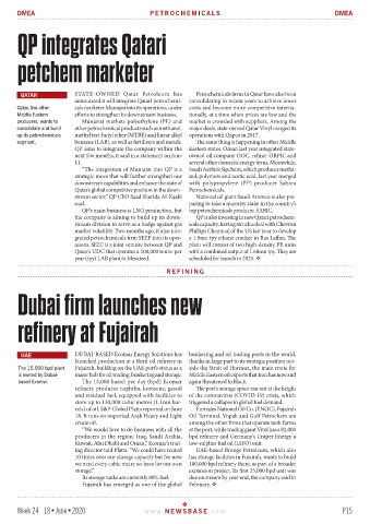 announced it will integrate Qatari petrochemi- consolidating in recent years to achieve lower