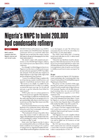 NNPC wants to condensate refinery, to maximise value from the COVID-19 crisis caused delays.