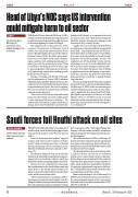 Sanalla went on to say that he hoped the US would play an active role in efforts to negotiate a peace deal. “I am hopeful that the US will con- tinue their efforts to broker peace so that Libya’s economy can slowly rebuild and work towards prosperity for all Libyan people,” he said. “We urgently need US leadership to help end the oil embargo, not just to avoid a financial crisis, but to prevent major damage to national infra- structure. Every day that passes with oil sitting in pipelines increases the damage to our infra- structure, increases the pollution risks from leaks and reduces our ability to quickly resume oil production.”