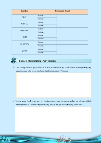5. Dari berbagai reaksi garam dan air di atas, adakah hubungan reaksi kesetimbangan ion yang