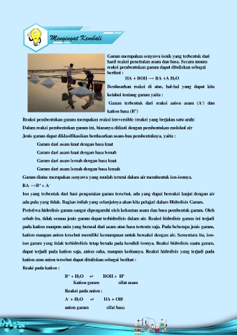 Garam  terbentuk  dari  reaksi  anion  asam  (A )  dan