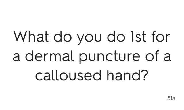 What do you do 1st for a dermal puncture of a calloused hand? 51a