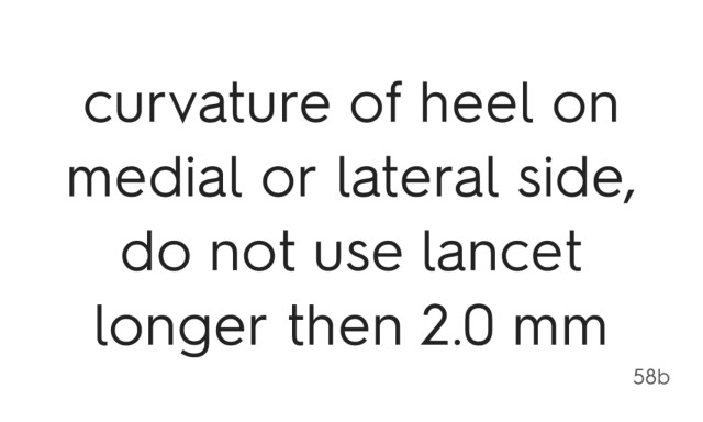 curvature of heel on medial or lateral side, do not use lancet longer then 2.0 mm 58b