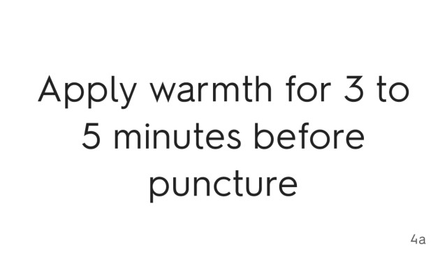 Apply warmth for 3 to 5 minutes before puncture 4a