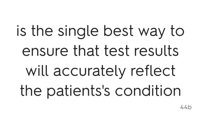 is the single best way to ensure that test results will accurately reflect the patients's condition 44b