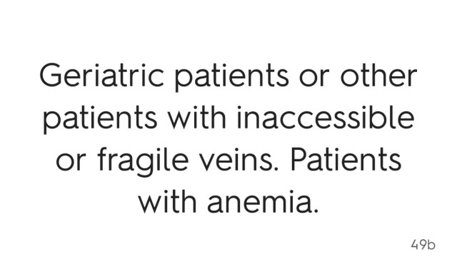 Geriatric patients or other patients with inaccessible or fragile veins. Patients with anemia. 49b