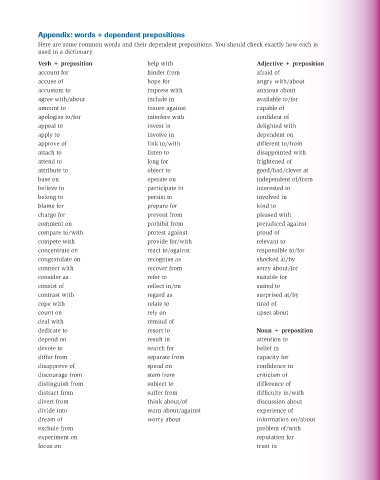 Here are some common words and their dependent prepositions. You should check exactly how each is