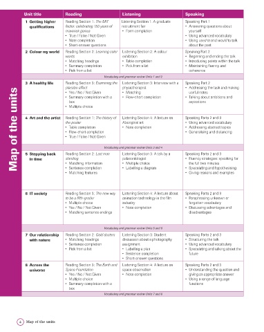 Unit title Reading Listening Speaking