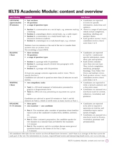 EACH PART OF THE TEST &OR INFORMATION ON COURSES REQUIRED BAND SCORES AND INTERPRETING BAND SCORES SEE WWW IELTS ORG