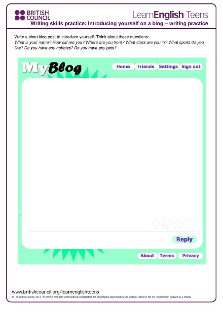 Writing skills practice: Introducing yourself on a blog – writing practice