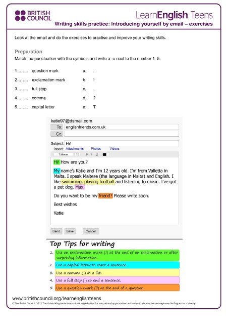 Match the punctuation with the symbols and write a–e next to the number 1–5.