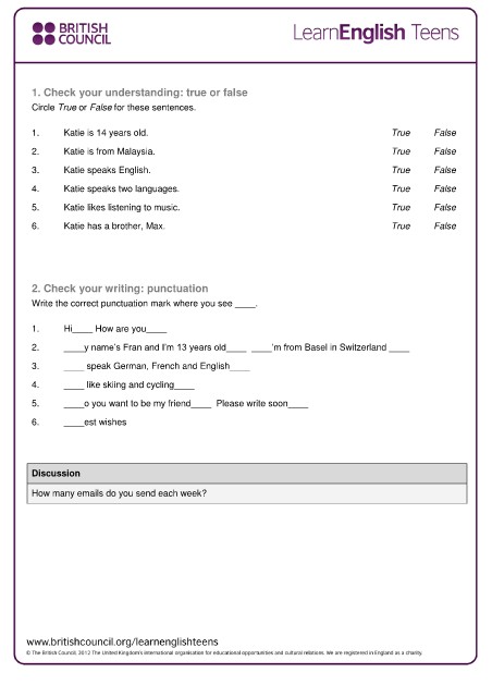 2. ____y name’s Fran and I’m 13 years old____ ____’m from Basel in Switzerland ____