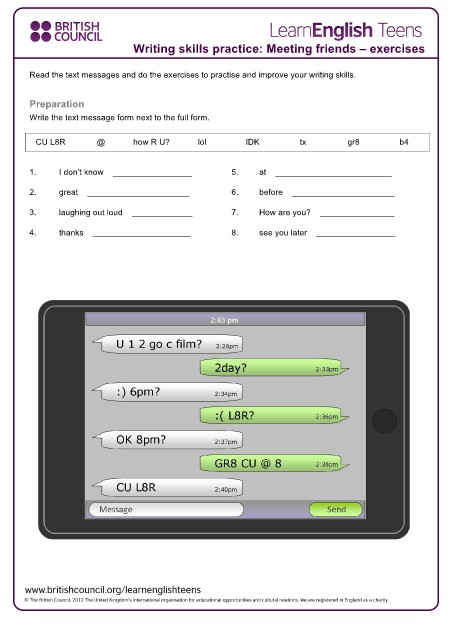Read the text messages and do the exercises to practise and improve your writing skills.