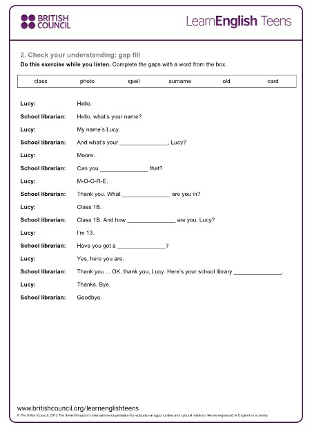 School librarian: And what’s your _______________, Lucy?