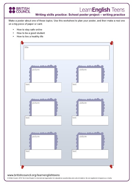 Make a poster about one of these topics. Use this worksheet to plan your poster, and then make a real one