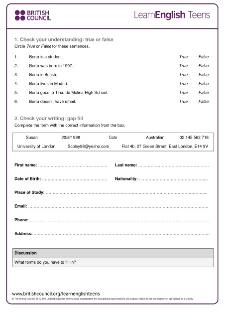 4. Berta lives in Madrid. True False