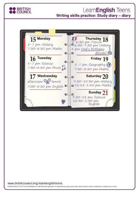 Writing skills practice: Study diary – diary