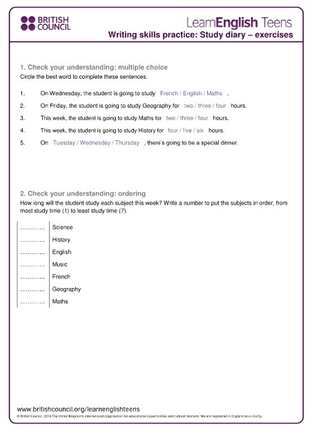 2. On Friday, the student is going to study Geography for two / three / four hours.
