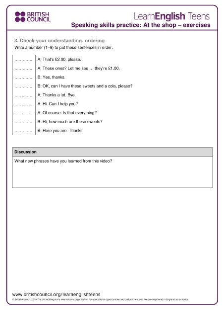 Speaking skills practice: At the shop – exercises
