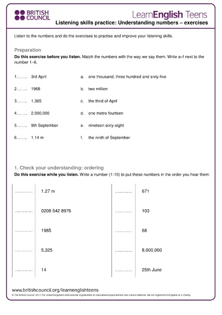 Listen to the numbers and do the exercises to practise and improve your listening skills.