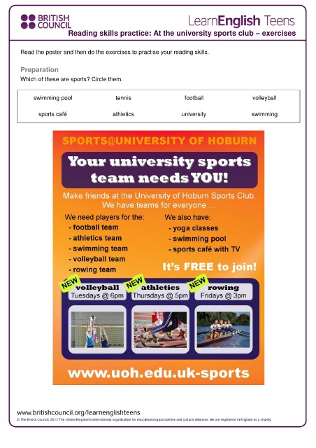 Reading skills practice: At the university sports club – exercises