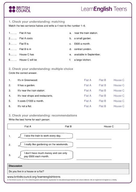 5. It costs £1000 a month. Flat A Flat B House C
