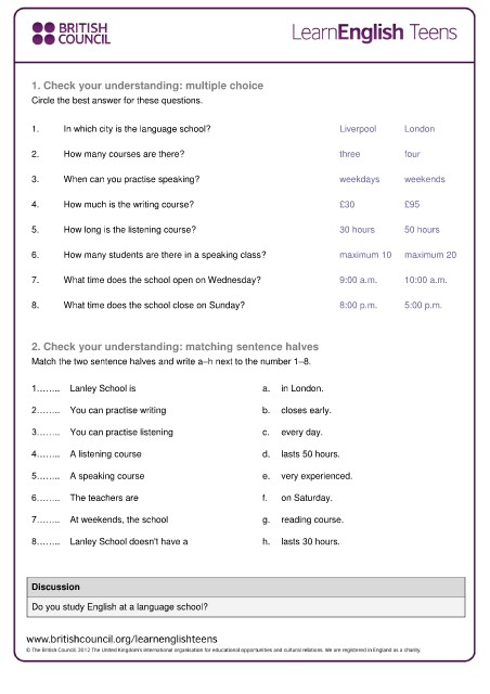 6. How many students are there in a speaking class? maximum 10 maximum 20