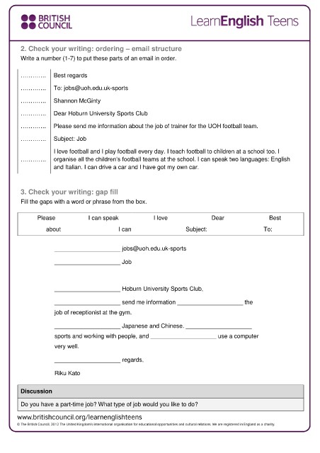 …………. organise all the children’s football teams at the school. I can speak two languages: English