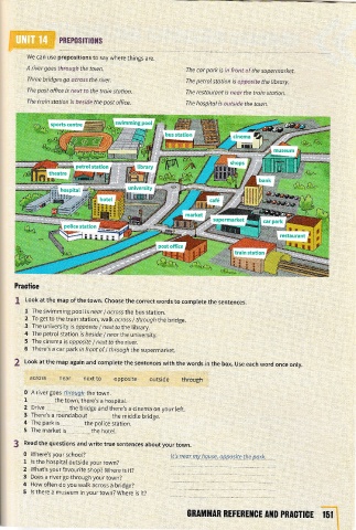 & Look at the map of the town. choose the correct words to complete the sentences.