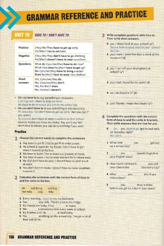 Negative l/You/We/They don't have to go climbing. 1 уоur mum / work five da1,5 з week at the