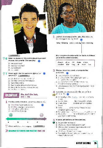 9с     Listen to Jason  and  Mia talking  аЬочt music and   verbs in the соrrесt columns.