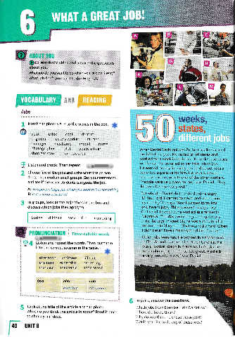 does. Then work in smal[ groups. Say your sentences his boss's home, or with one of the other workers.