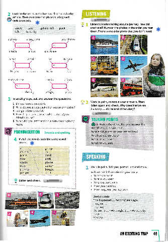 аrriче catch get оп / off pack ý9 she trave[? Number the photos in the order you hear