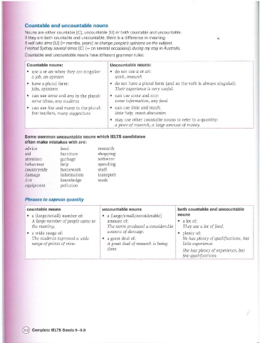 countable nouns                    uncountable nouns                 both countable and uncountable