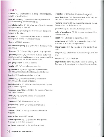 a'chieve v [T]  (31)  to succeed in doing something good,   o'besity n (34)  the state of being extremely fat