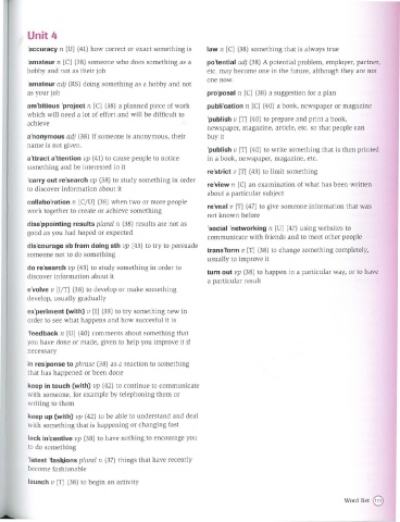 am'bitious 'project n [C]  (38)  a planned piece of work   publi'cation n  [C] (40)  a book, newspaper or magazine
