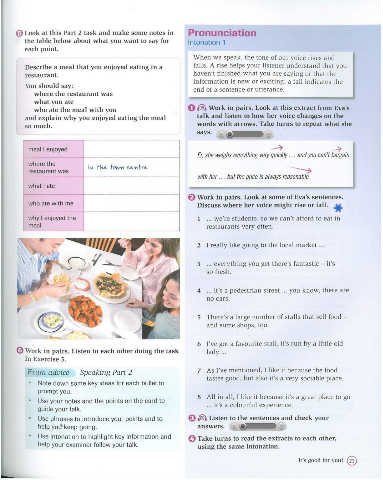 Describe a meal that you enjoyed eating in a falls. A rise helps your listener understand that you