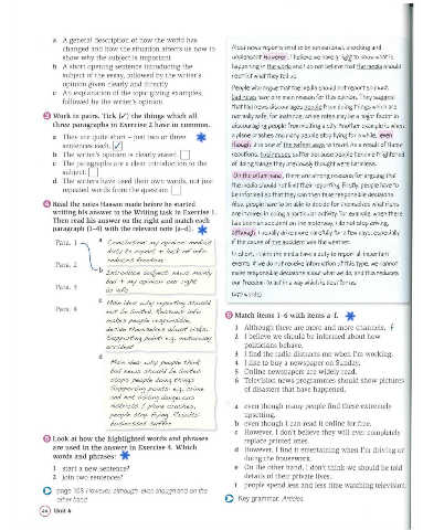 writing his answer to the Writing task in Exercise 1. are involved in doing a particular activity. for example. when there