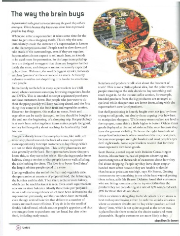 the aisle looking for them. The idea is to boost 'dwell time':   feel about shopping. People say they leave shops empty-