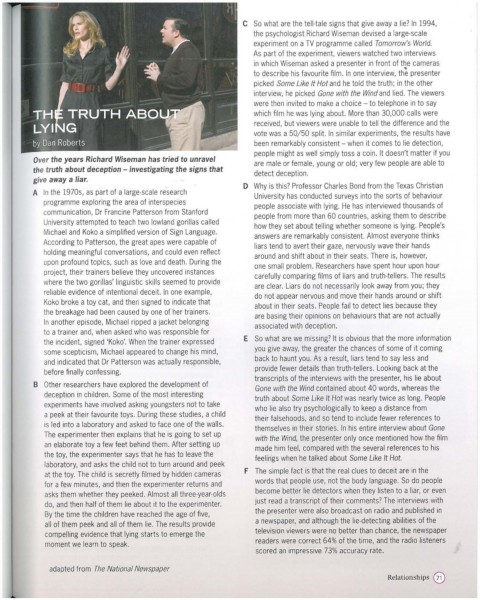 C So what are the tell-tale signs that give away a lie? In 1994,