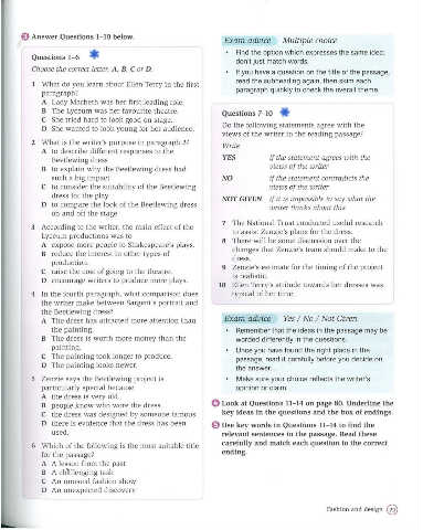D there is evidence that the dress has been 0 Use key words in Questions 11-14 to find the