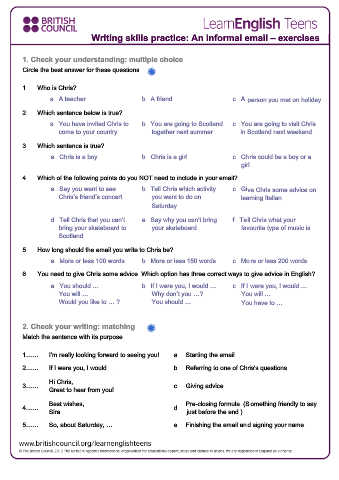 a. Say you want to see b. Tell Chris which activity c. Give Chris some advice on